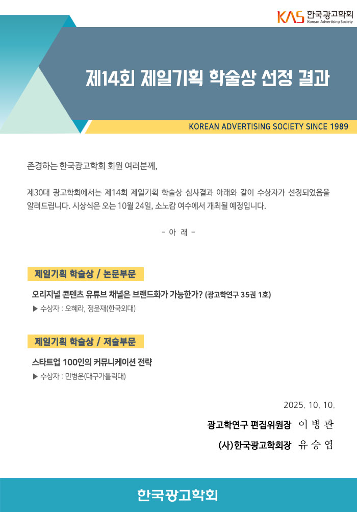제14회 제일기획 학술상 선정 결과