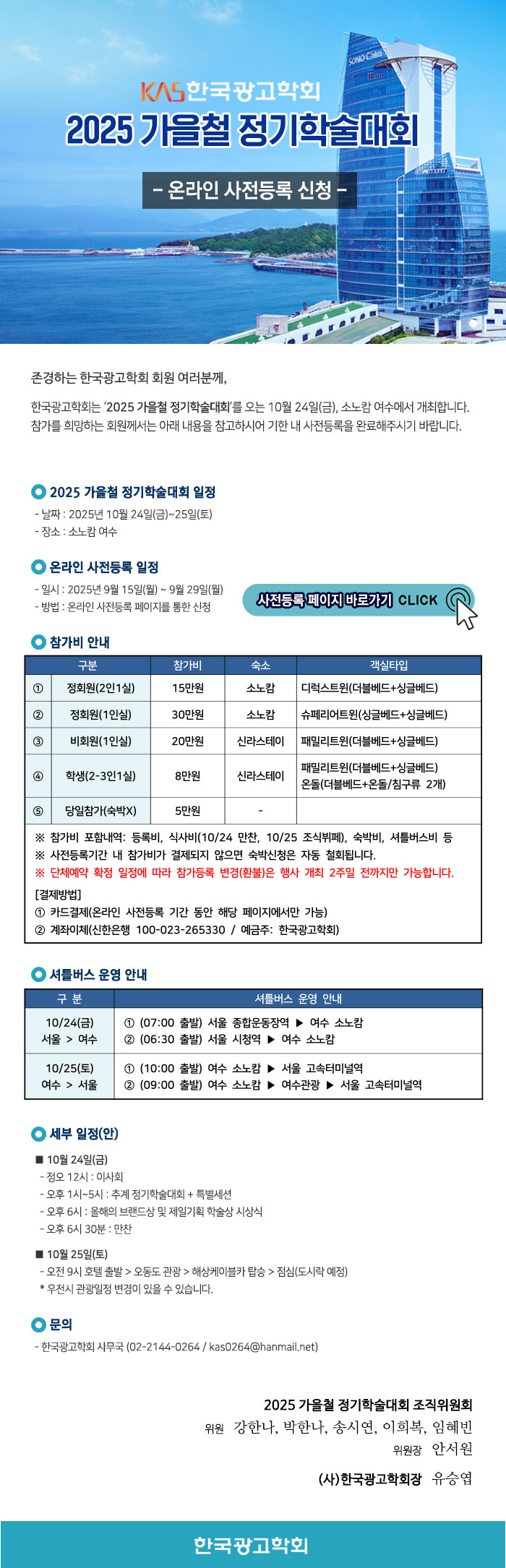 2025 가을철 정기학술대회 온라인 사전등록 신청 안내