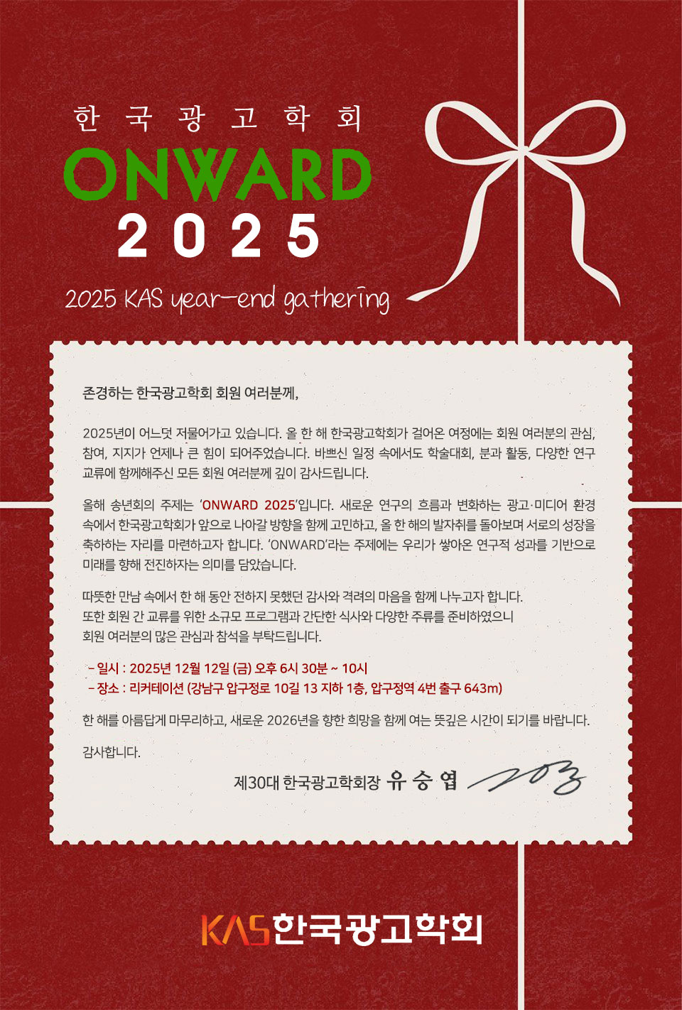 2025 한국광고학회 송년회 참가 신청하기 ▶