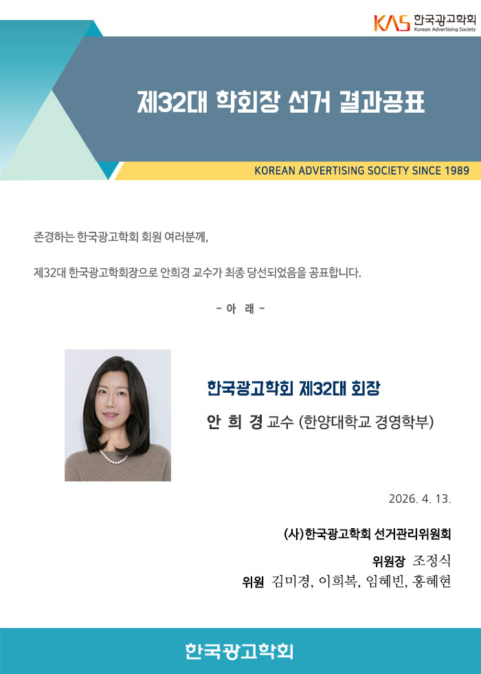 제32대 차기 한국광고학회장 안희경 교수 당선