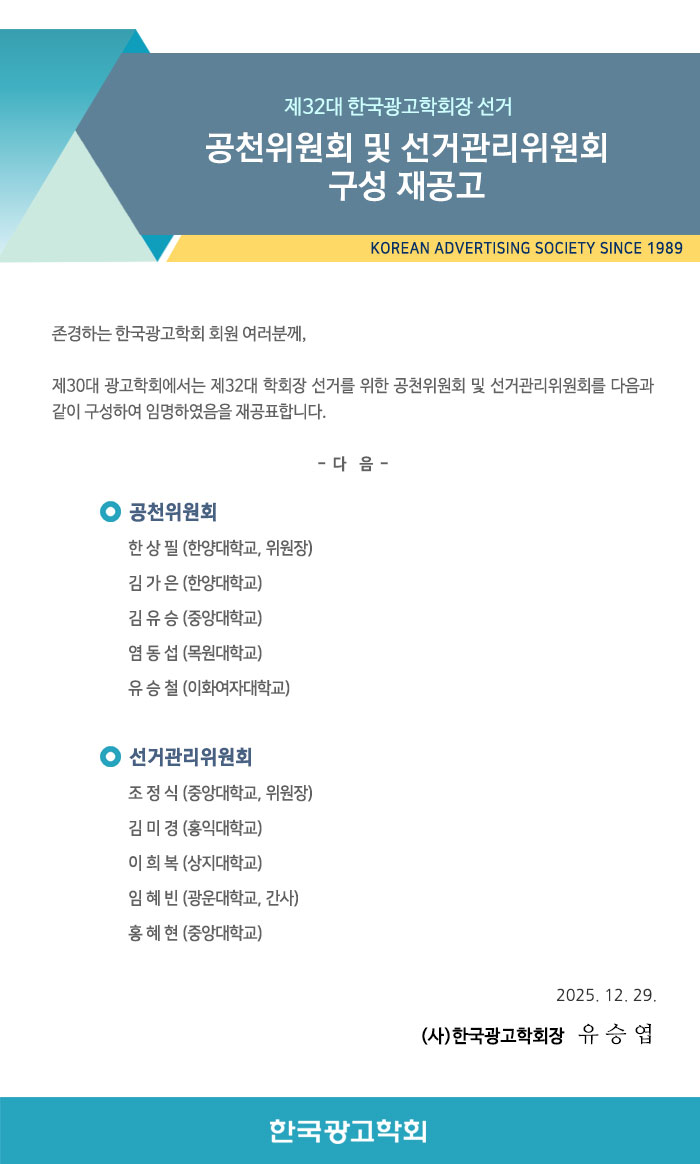 제32대 한국광고학회장 후보 모집 및 선거절차 안내